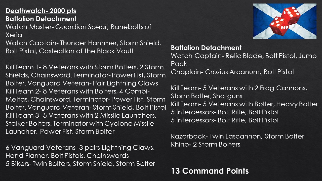 This game saw my Deathwatch force take on the Farsight Enclaves in a Chapter Approved 2018 Eternal War mission.