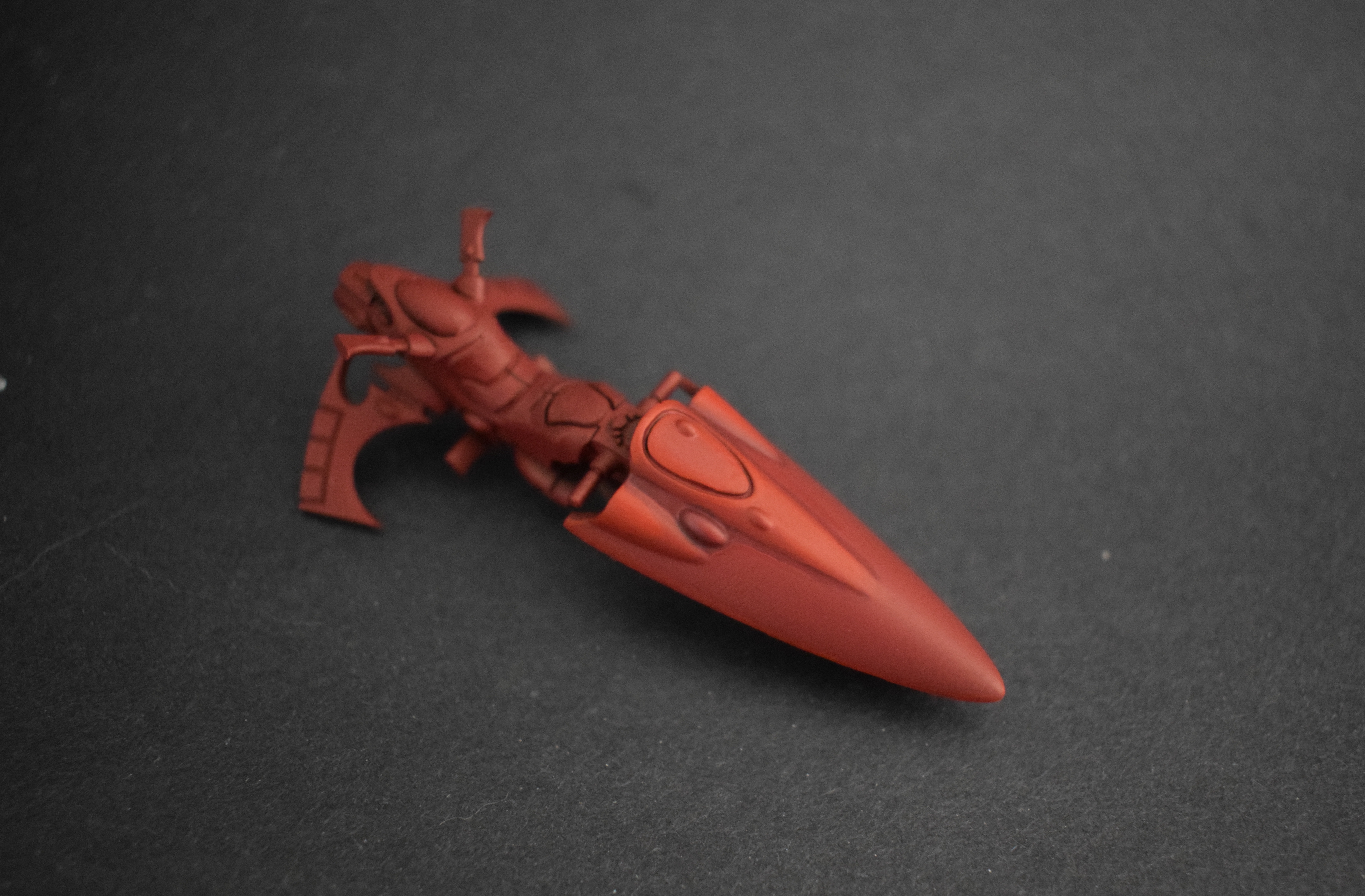 A great example of this on an Asuryani Wind Rider. The prow of the bike has two nodes on either side of big central raised area (where I think the engine is) and you really want to give some definition through color that area, otherwise the bike really starts looking flat, especially at a distance. Beyond Wind Riders I’d do this on any areas that are highly visible, typically with rounded surfaces, especially if they are the visual focus of the model.
