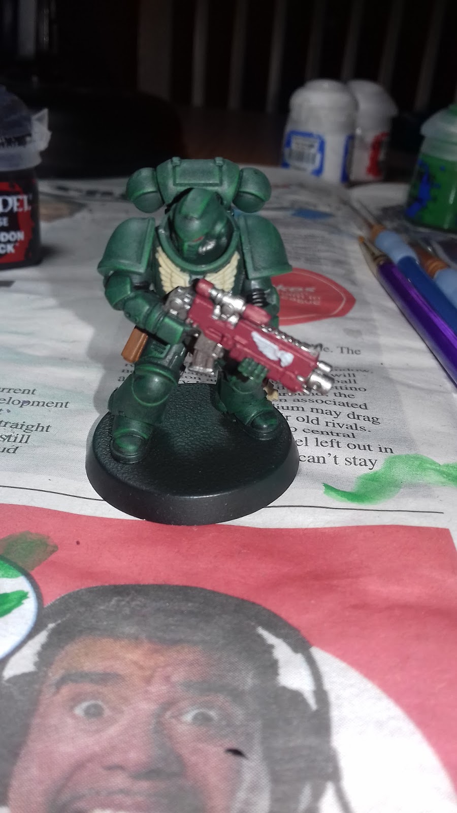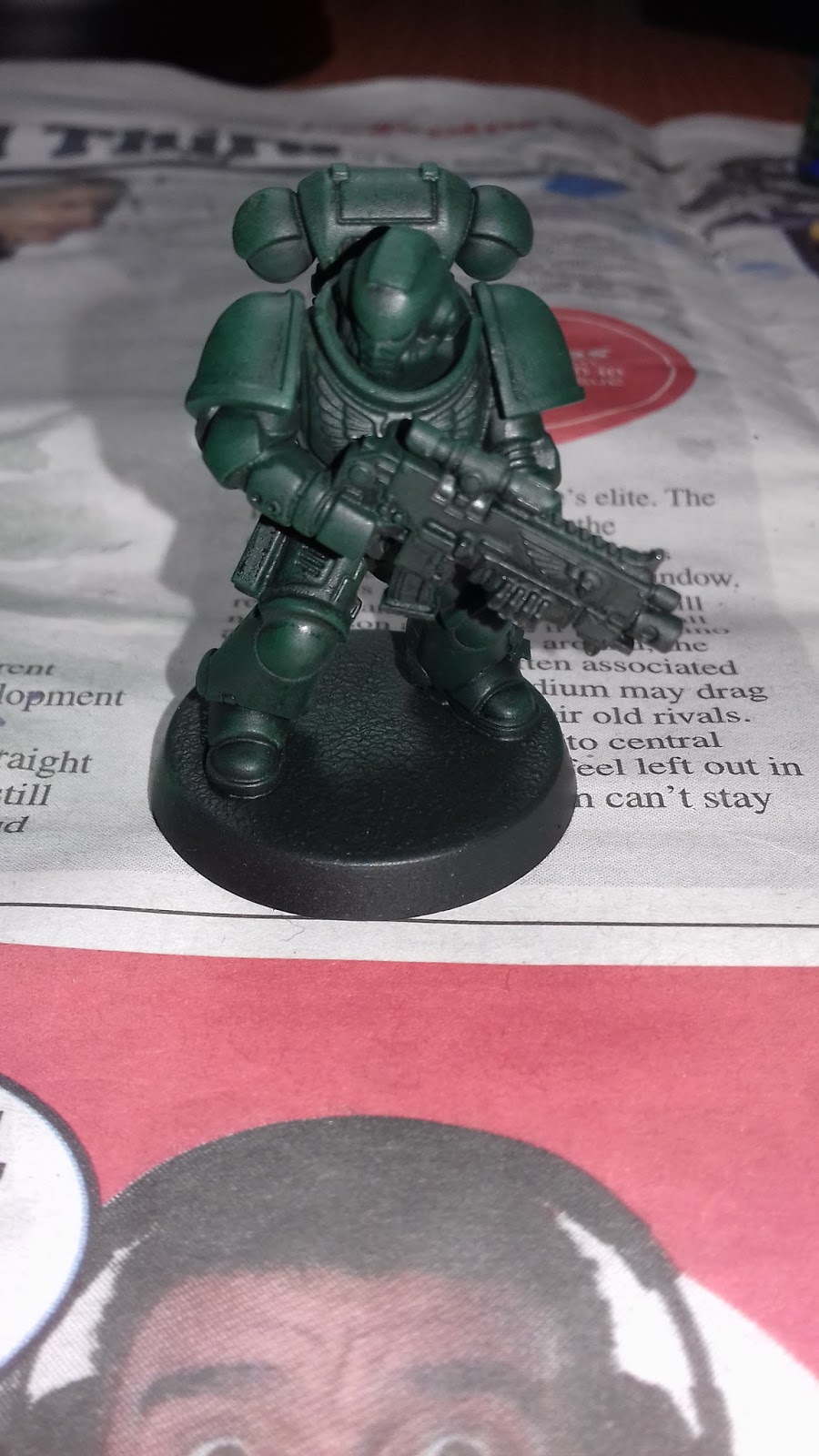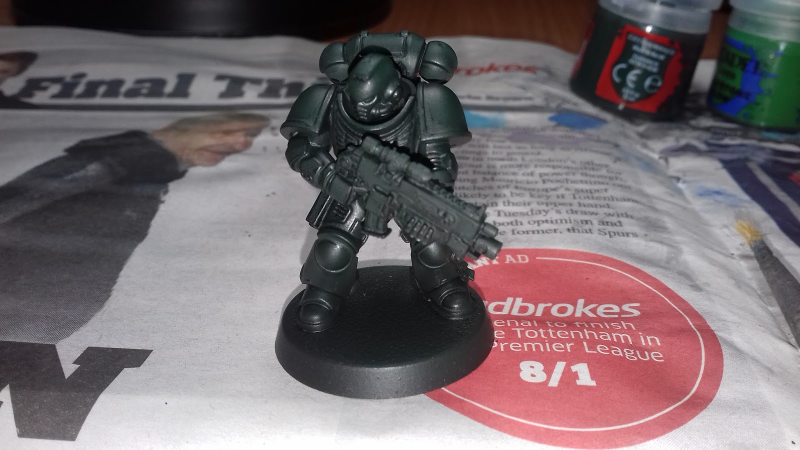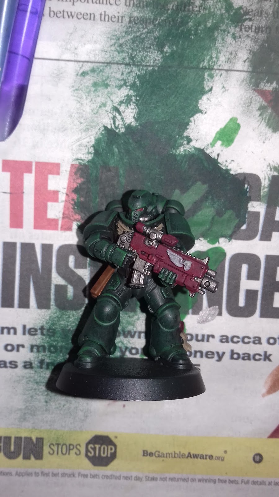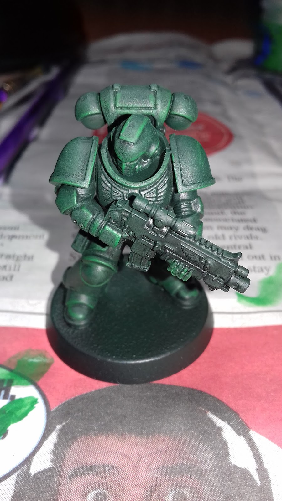 I decided that for my new force, I would try some edge highlighting. I had been doing this with my Deathwatch force with some success, so wanted to apply it to the Dark Angels as well. I based my colour scheme on the awesome Warhammer TV video tutorials, more specifically the Dark Angels Hellblaster and Dark Vengeance Tactical Marine videos.