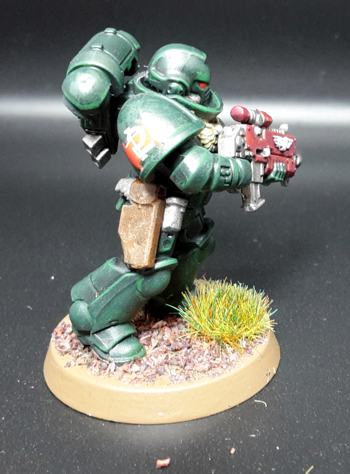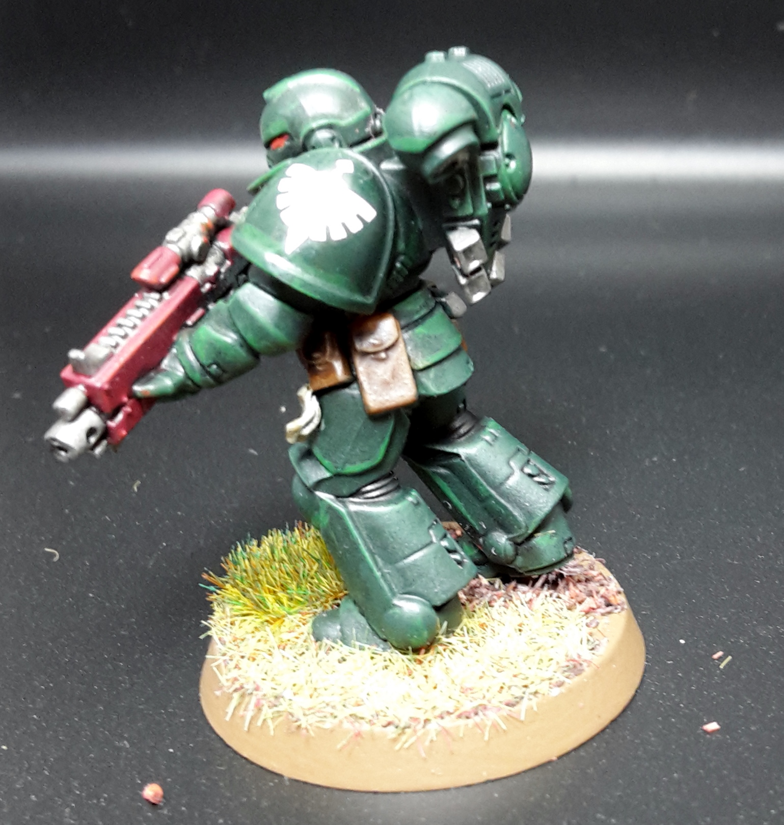 Dark Angels were my first 40k army, way back in 3rd edition. I took to the army due to the evocative background of the force, as well as the mix of Green wing, Ravenwing and Deathwing components of the army. This was a way to make three different colour schemes in one army. A bit daunting when you are first starting out, but it gives you somewhere to go as you grow your skills. My first Dark Angels models from this time featured a very simple colour scheme; washes weren’t really a thing back then, and I didn’t even bother with highlighting. My models were painted Dark Angels Green (obviously!) and the first versions featured bases painted Goblin Green with green flock on them, the classic GW look at the time. It took me several editions to get out of painting my bases green and experimenting with different colours and flocks!