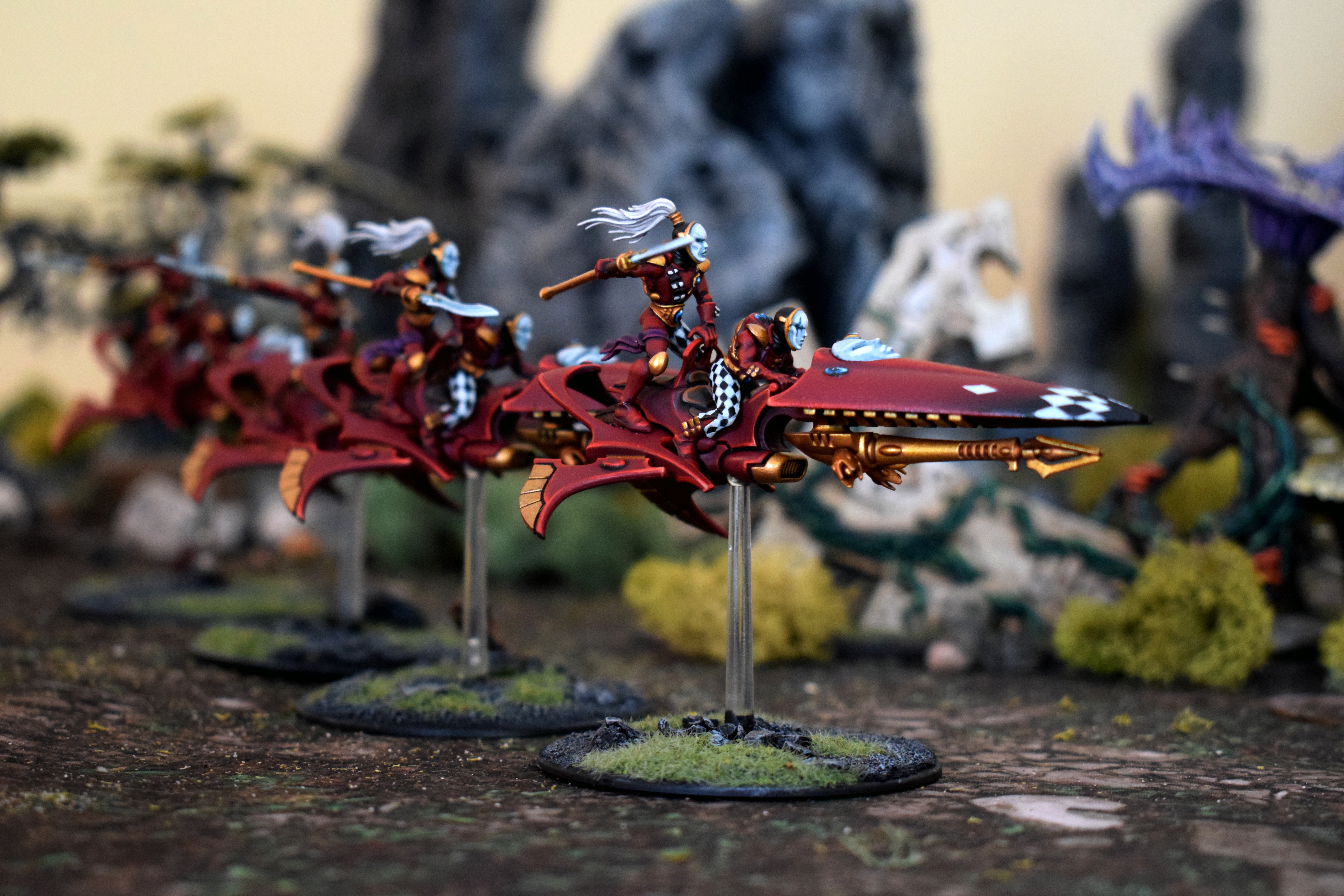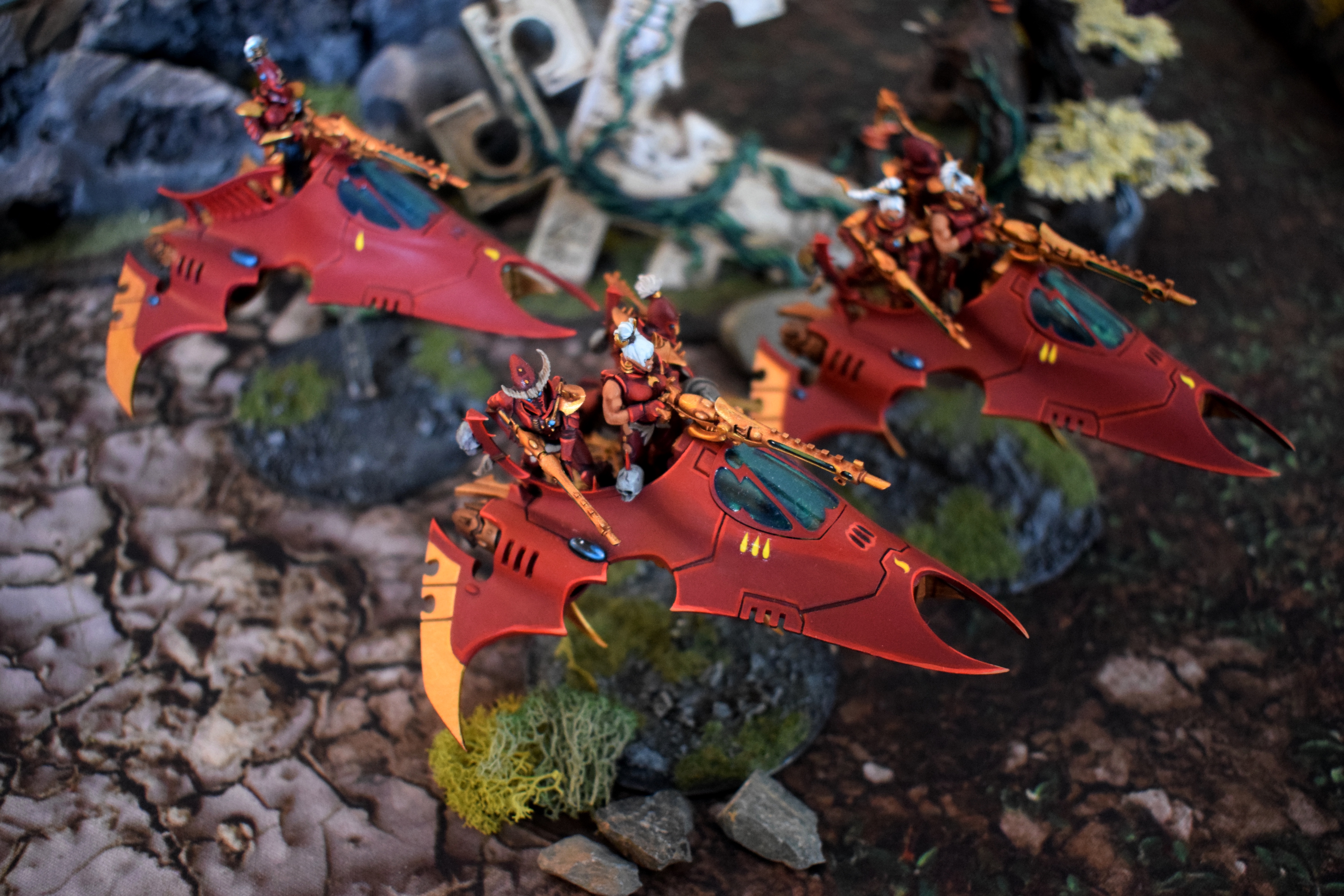 The trick I found is getting them in combat. To this end I really think Shining Spears will take a tick-up in popularity again after the changes to Ynnari, but also Wyches with Shardnets (my personal favorite), Harlequin Caress Troupes, Skyweavers with Zephyr Glaives, dual blade Wraithblades and especially Howling Banshees.