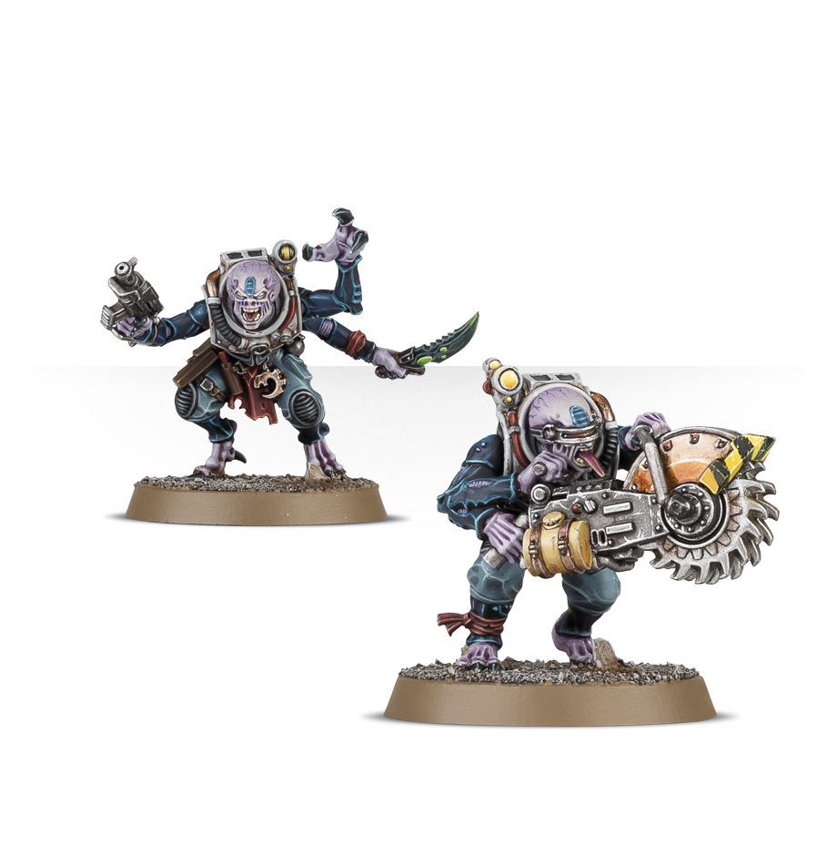 You are probably going to want to upgrade the Acolyte Hybrids with some of the Heavy Rock Weapons to give them even more punch in combat. The Heavy Rock Saw is the cheapest option and probably one of the most reliable. The great benefit of the Saw is that you don’t suffer the -1 to hit for attacking with it, you will be attacking at S8 and AP-4 (denying a save to almost every unit) and 2 damage per wound. This gives you a reliable way to do damage to tough enemy units or vehicles.