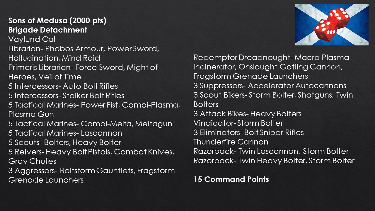 The new Space Marine codex and White Scars supplement has got me excited about getting my forces back on the tabletop once more. In this game, I dust off my Scars and take them up against the Sons of Medusa for a Marine on Marine slugfest.