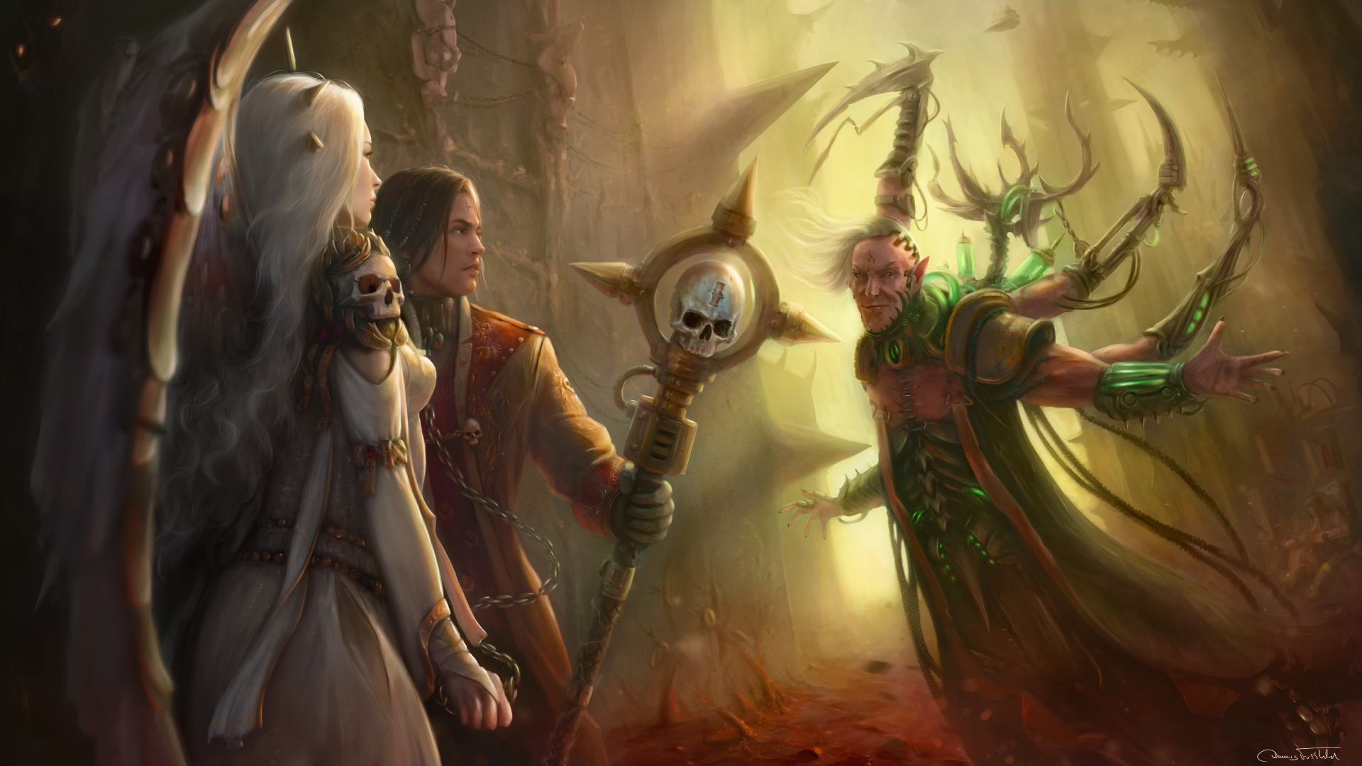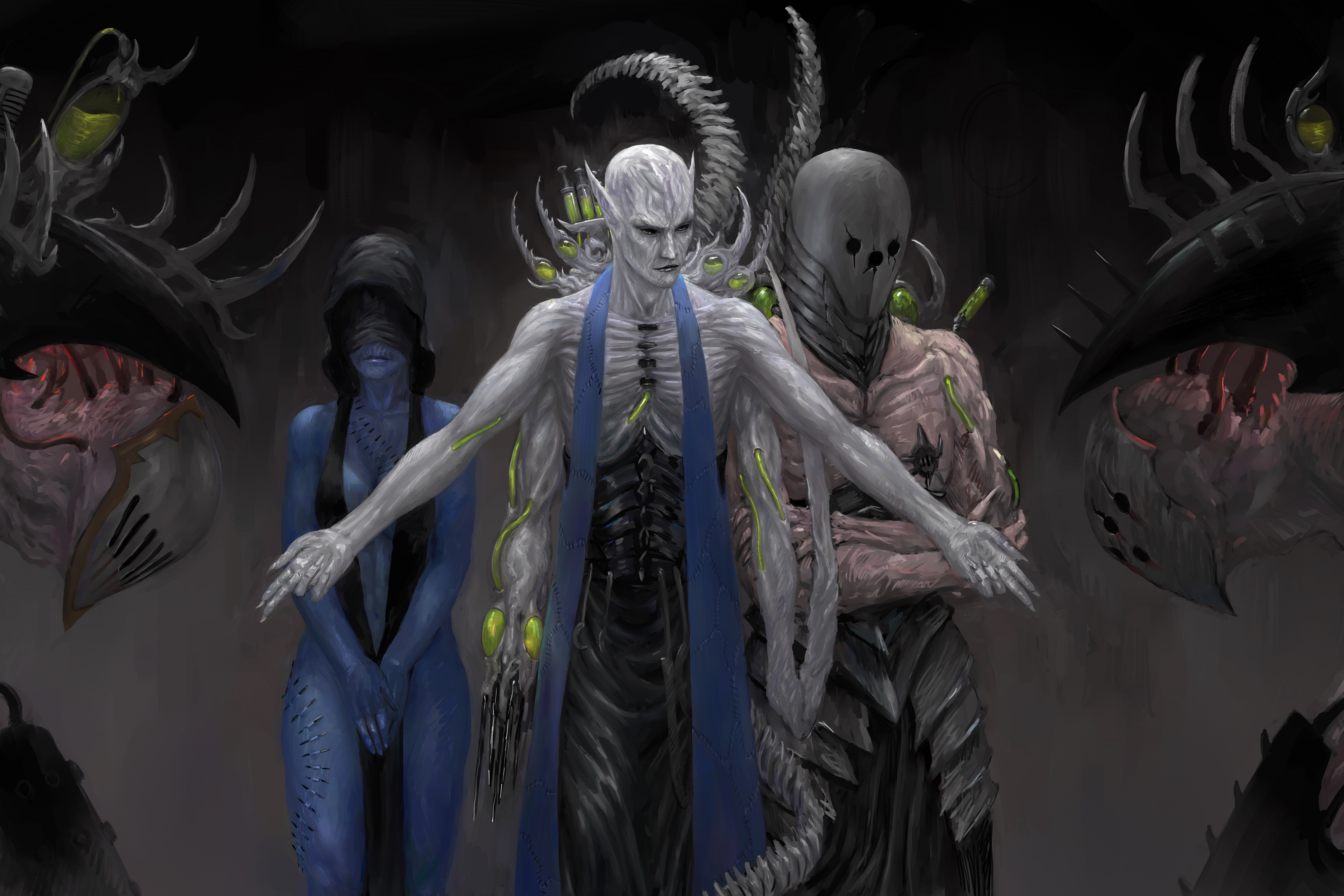 The Haemonculi are the masters of the Covens of Commorragh; flesh-sculptors extraordinaire, they practice their grisly arts on friend and for alike, for most among their kind have lived for untold millennia and have discarded all mortal feeling as fleeting and worthless. Feeding upon the agonies they inflict (as well as complex bio-alchemical elixirs running through their systems), a Haemonculous knows more ways to bring out endless agony than most civilizations can even conceive of, and they delight in discovering new ones- their “art,” if it can be called that, is their only true passion project and one of the few things that sparks joy in their strange hearts.