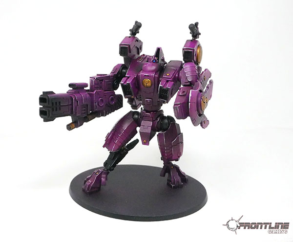 This lovely T’au Riptide was painted by the FLG Paint Studio, and was magnetized for weapon options!