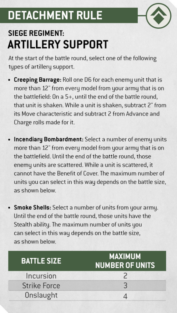 For those who revel in the idea of grinding treads and armored transports, Mechanised Assault is the perfect choice. This detachment focuses on delivering close-range shock troops straight into the heart of enemy forces via heavily armored transports. The vehicles deploy troops where they’re needed most, and once the enemy is caught in the jaws of the assault, the Astra Militarum forces will hit them hard.