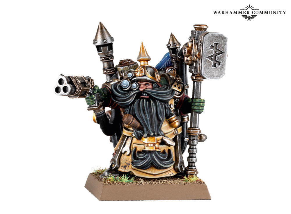 - Burlok Damminson: A young, impetuous dwarf inventor, Burlok brings experimental weapons to the battlefield and boosts nearby ranged units. Forge World resin.