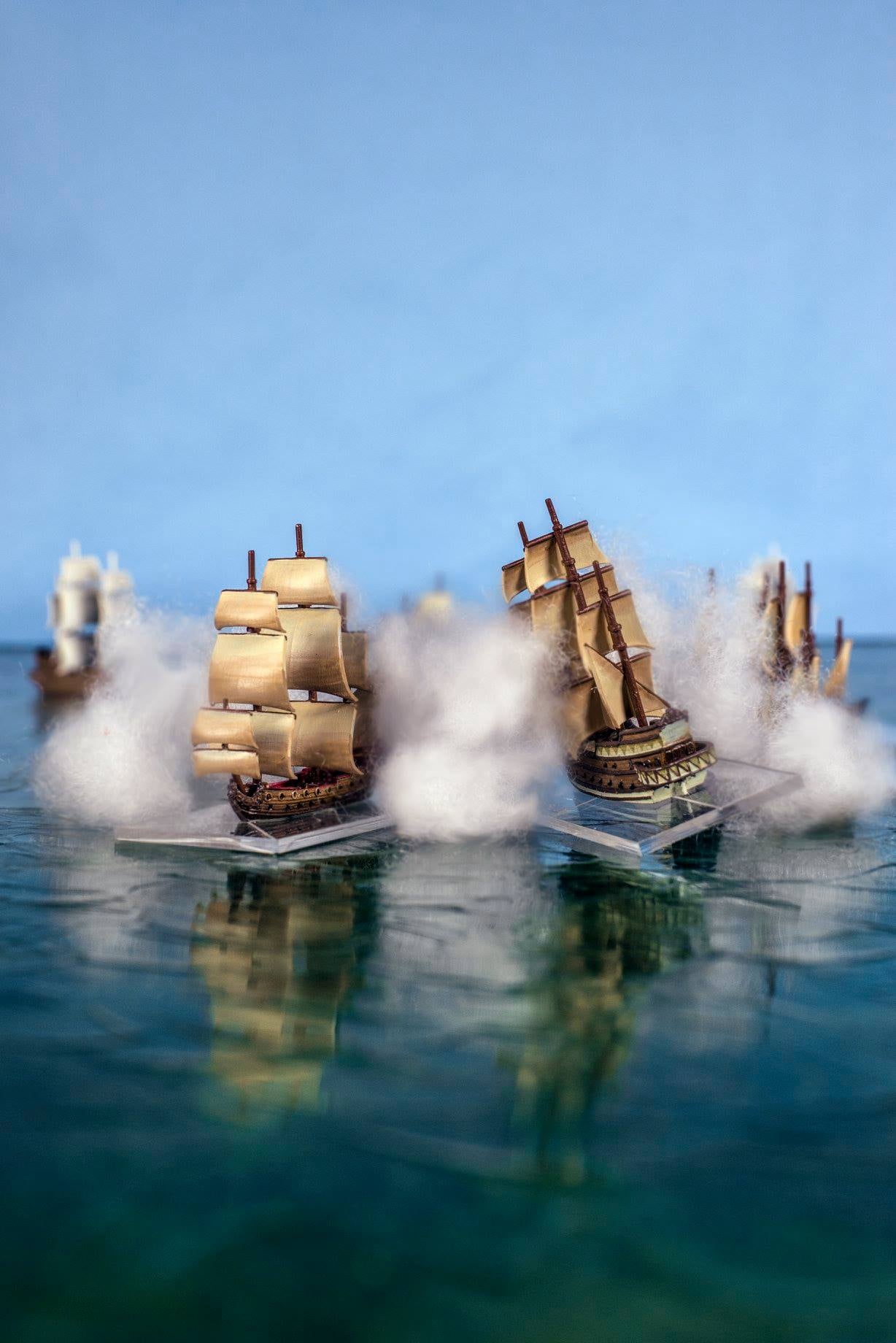 For those who have never played it, Oak & Iron is a 1/600th scale naval battle game set during the golden age of piracy. Everything you need to play is include in the core set. Play with over 5 different nationality factions and tons of ships to choose from, including light frigates, sloops, corvettes, and other ships of the line!”
