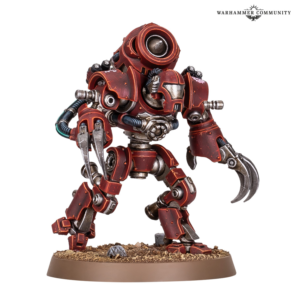 Magos Falkan’s mysterious disappearance led to the Ursarax’s widespread adoption across the Adeptus Mechanicus, as his acolytes passed along the schematics to interested factions. Soon, you’ll be able to add these terrifying shock troops to your own army with the release of a plastic kit that includes six Ursarax models armed with lightning claws, volkite incinerators, and the option for power fists.