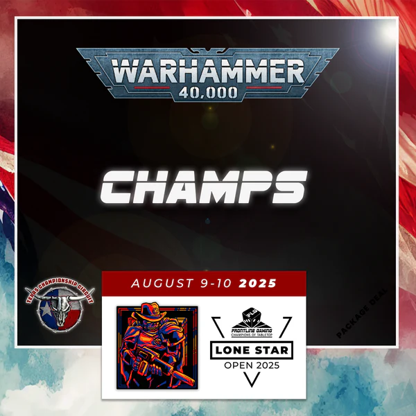 - Warhammer 40K Champs: A two-day, six-round tournament that’s GW Golden Ticket eligible and contributes to both TCC and ITC points.