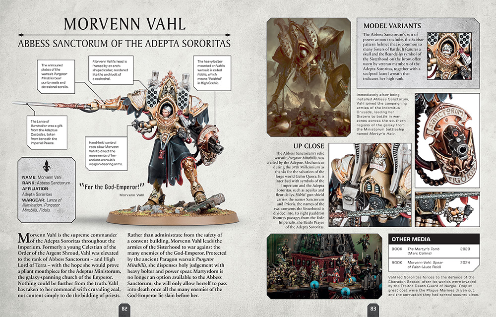 Packed with more than 120 entries, this Character Encyclopedia brings to life the legendary figures of the 41st Millennium—from Primarchs and Chaos Lords to Imperial heroes and xenos icons. Co-written by lore veteran Wade Pryce, the book draws from over 30 years of stories across novels, codexes, animations, and beyond.
