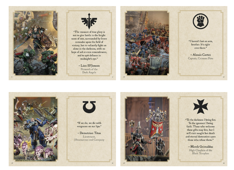 This bite-sized book is big on inspiration, compiling iconic quotes from Space Marine chapters throughout Warhammer history. Accompanied by stunning miniature photography, this pocket-sized tome is perfect for a little desk-side heresy-purging or as a stocking stuffer come holiday season.