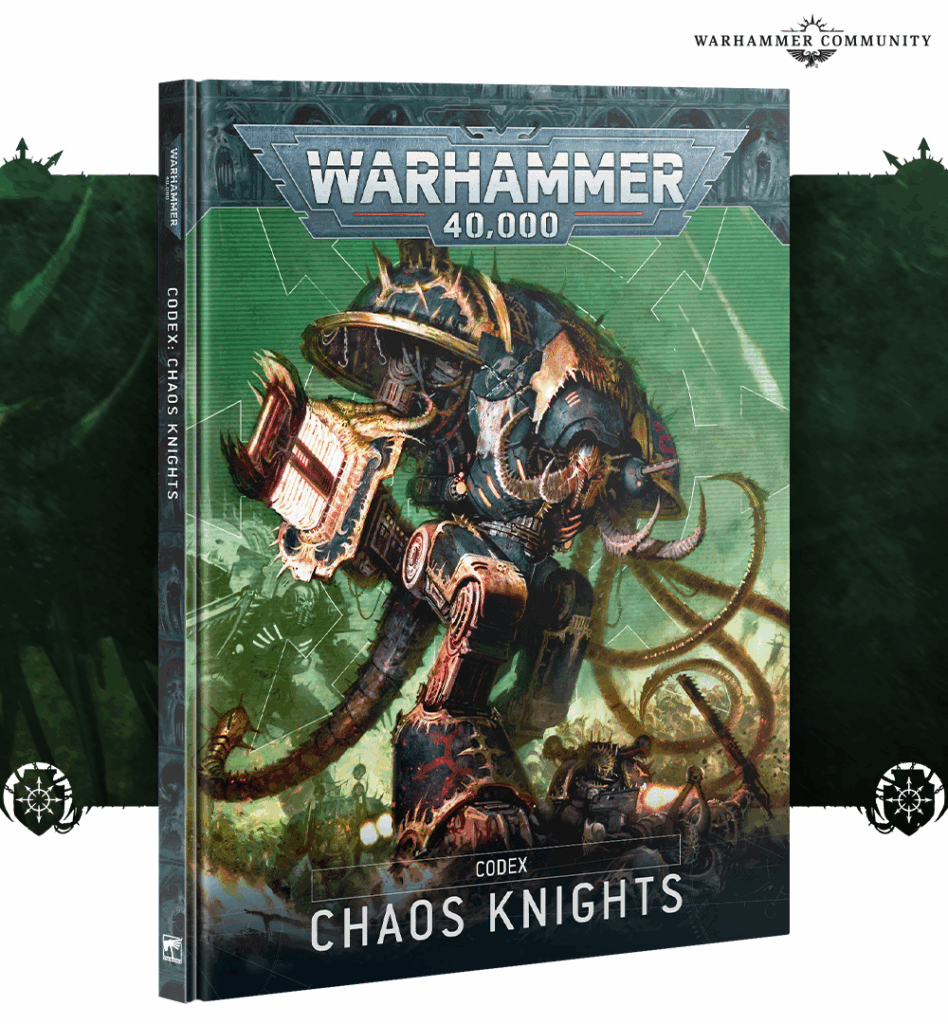 To complete the experience, a full set of Chaos Knights Datacards and custom dice will be available alongside the codex – because if you’re going to drown the battlefield in fire and steel, you may as well do it with matching accessories.