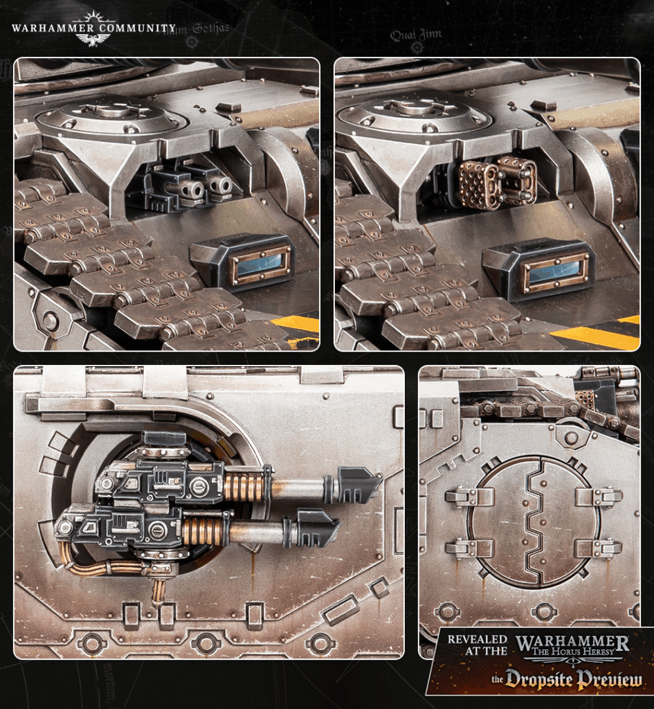 Its centerpiece is the accelerator cannon, a turret-mounted behemoth capable of punching holes in Titan-grade armour. But that’s just the beginning. It also mounts a demolisher cannon in its hull, quad-lascannons (which can be swapped for laser destroyers or gravis heavy bolter batteries) on its sponsons, and additional hull-mounted weapons, with the option for pintle-mounted armaments and crew detail to top it off. It’s essentially a naval dreadnought with treads—and you can finally build it without breaking out the resin saw.