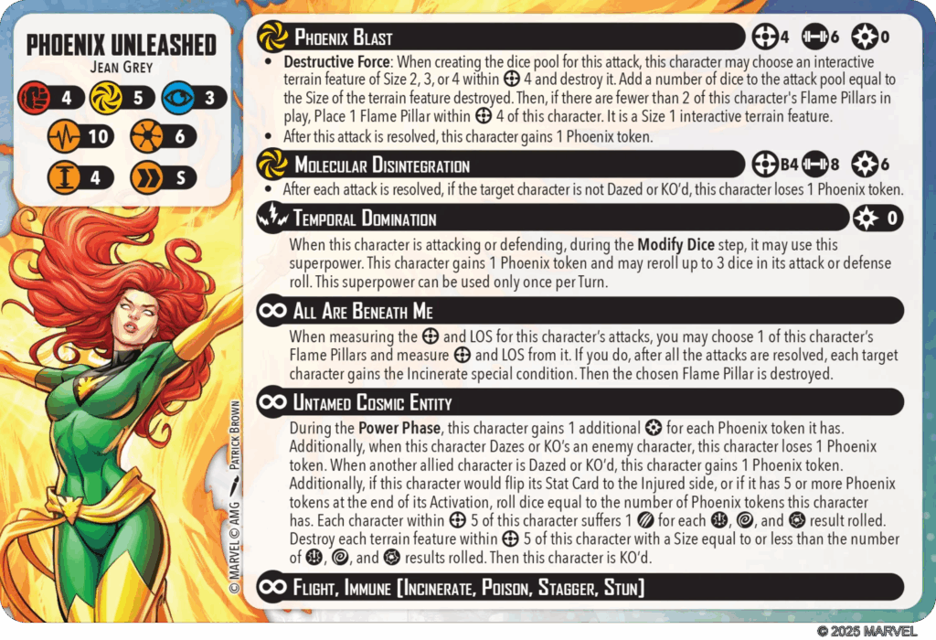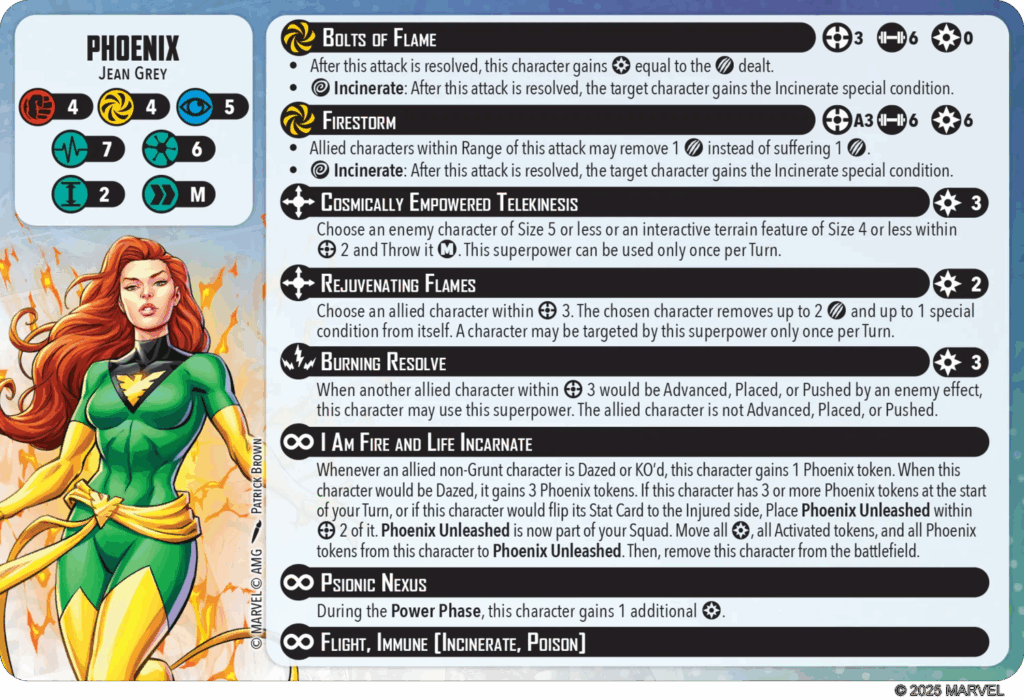 Get ready—Jean Grey soars back into Marvel: Crisis Protocol in her most awe-inspiring form yet: the Phoenix. And when the fire burns hottest, she becomes Phoenix Unleashed, a force of cataclysmic power!