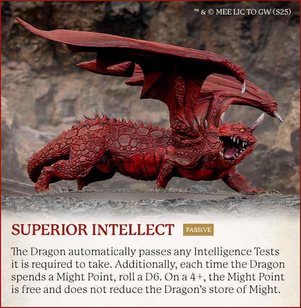 Special rules like Dominant (5) and Large Target come standard, but the big news is in its upgrade options. Breathe Fire no longer costs a Will Point, Wyrm Magic adds Foil Magic, and the new Superior Intellect lets the Dragon automatically pass Intelligence Tests — and even recover Might Points on a 4+ when spent. That’s terrifying.