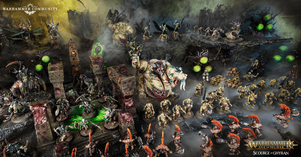Tomorrow’s Scourge of Ghyran preview promises a rare shift in tone — we’ll look at one of the few factions trying (at least somewhat) to improve life in Ghyran, not wreck it. But for today, lift a rotting mug in honor of Nurgle: the one and only master of the realm’s decline.