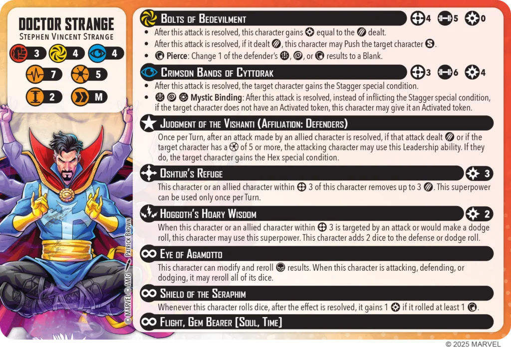 - Eye of Agamotto buffs dodge rolls in addition to attack and defense.