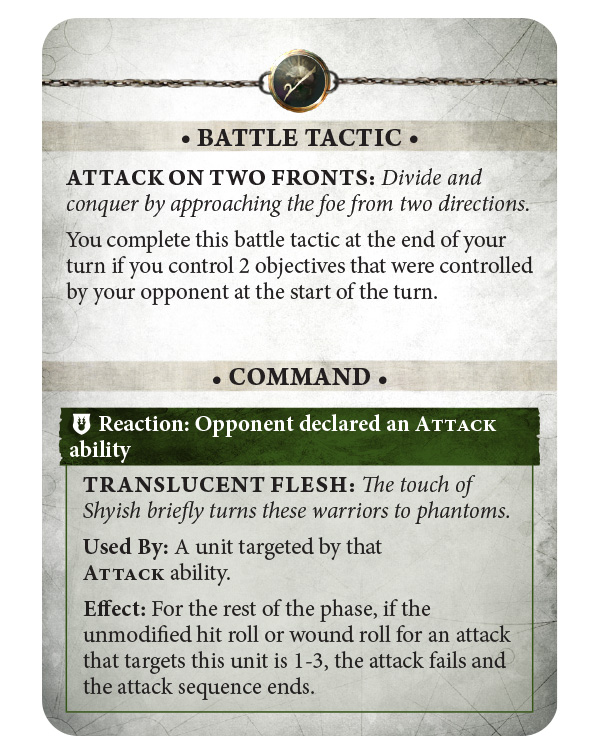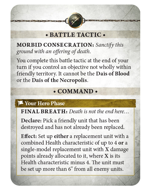 Other Battle Tactic cards introduce new reactions, such as Translucent Flesh, which allows a unit targeted by an attack to negate hit and wound rolls of 1-3 for the rest of the phase. This can be a lifesaver in key moments, providing a strong defense against high-damage enemies. Similarly, Final Breath offers a chance to resurrect destroyed units, replacing them with a new unit or even a single model with damage already allocated. This ability helps keep your forces fighting longer, preventing the momentum of battle from shifting too quickly in your opponent’s favor.