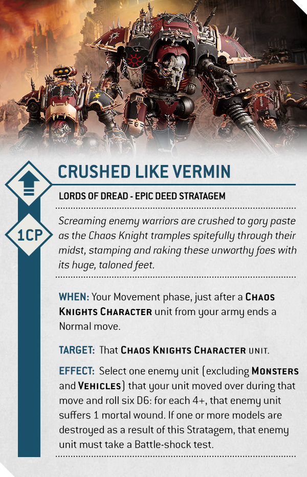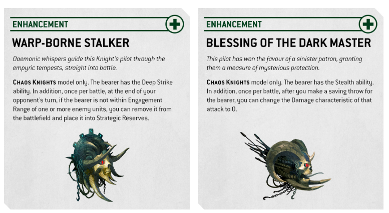 Enhancements abound in this Detachment, offering powerful one-use effects like Warp-borne Stalker, which grants Deep Strike and allows repositioning into Strategic Reserves, or Blessing of the Dark Master, which gives Stealth and once per battle reduces an attack’s damage to zero. And when you want to crush the chaff underfoot, the Crushed Like Vermin Stratagem lets you deal mortal wounds just by stomping over enemy units in your movement phase.