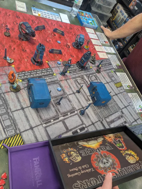 I still counted this as a win in my favor. Keeping Kingpin from running away in the first two rounds means that you greatly take away his ability to score as you Daze models on his squad. Often if the game goes long Kingpin is at a disadvantage and I also knew the play patterns of a Kingpin squad and I could position to block his advantage and set up the next turns to Daze his models and move Kingpin off of points using Medusa’s builder.