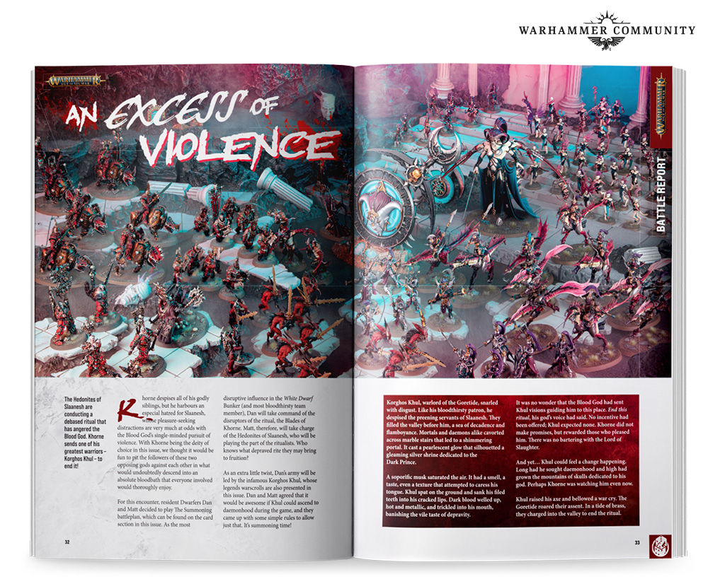 Adding even more carnage, you’ll find three new Legends warscrolls for Khorgos Khul, detailing this infamous champion’s evolution across the Age of Myth, the Age of Chaos, and the Age of Sigmar. And rounding out the issue is the second part of James Brogden’s gripping story, The Trials of Albarak.