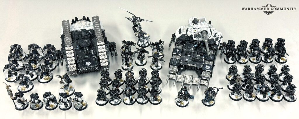 Let’s look at how this works in action. Joel from Warhammer Community built a Raven Guard list around Corvus Corax. Here’s the revised version using the new system: