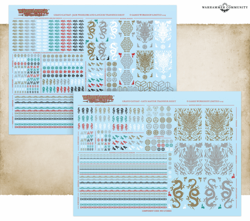 There are four main transfer sheets: one each for Jade Warriors, Gate Masters, and Sky Lanterns, plus a deluxe sheet packed with metallic detailing. That last one is absolutely dripping in detail. Holly even called it “real fancy,” and after seeing the early previews, I’d agree.