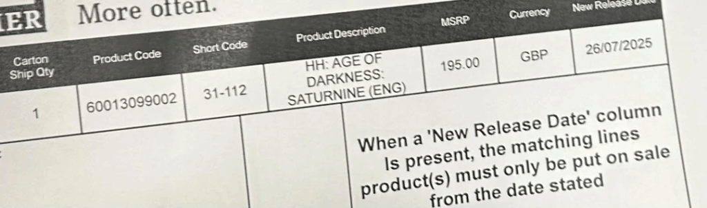 For a while now we have been expecting the Horus Heresy box to go on pre-order, especially with the flurry of blog posts and reveals. However this latest leak suggests it won’t be hitting shelves until late July. This will likely also involve a 2 week pre-order window so expect the pre-orders to open July 12!