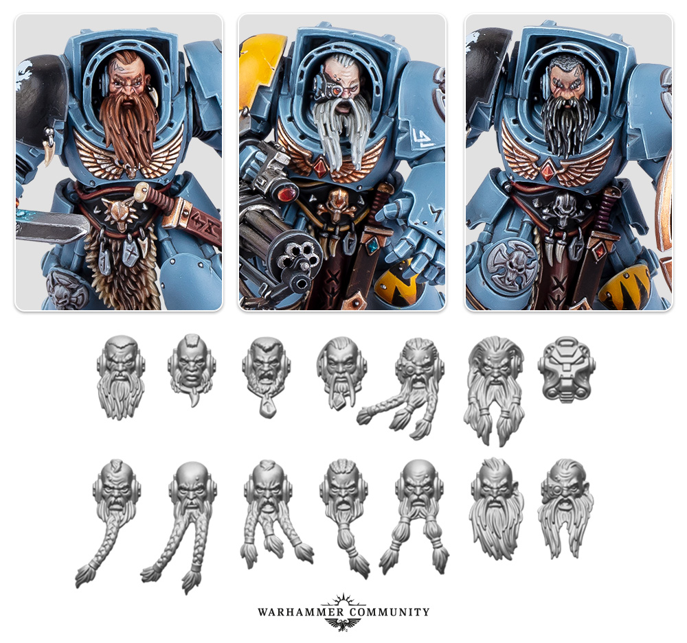 This isn’t just a quirky fluff dive—it’s smart design. The new Space Wolves kits use head sculpts to reinforce where each warrior sits in the saga of battle, growth, and death. From youthful Blood Claws to grizzled Terminators, the beards are visual storytelling cues.