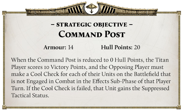 In War of Gods, both players can bring Titans and blast away while earning points by targeting off-board Strategic Objectives like command posts and defense grids. These objectives have their own armor and hull values and give out bonuses or cause debuffs based on what happens to them. For instance, destroying a command post suppresses nearby enemy units.
