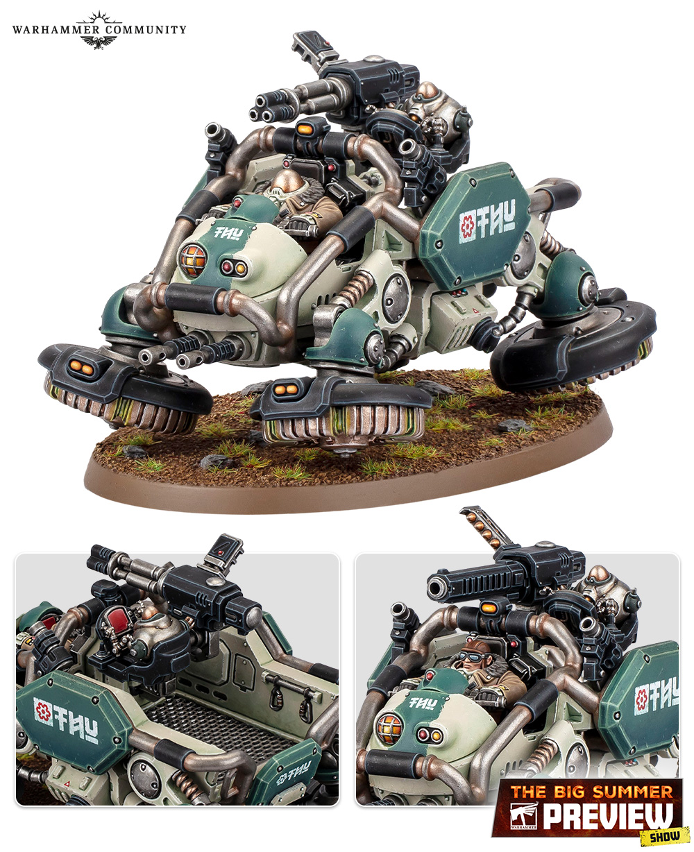 Next come Cthonian Earthshakers, mole mortars hearkening back to Rogue Trader days. They fire breacher or tremor shells from underground, and the crew gains tools like geomantic echolocators.