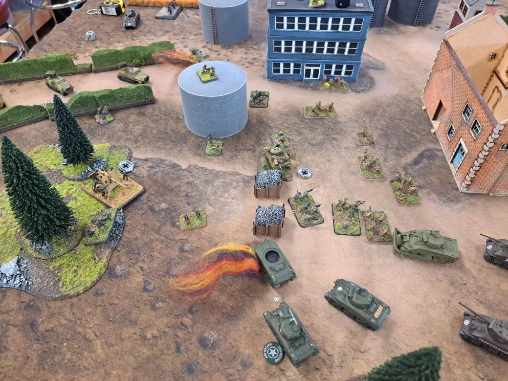 Rosie the Rocketeer showed up, blew up a German rocket truck then never came back lol. Unfortunately my opponent was not so lucky and lost almost an entire platoon trying to assault 3 shermans.