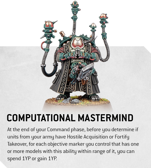 If you prefer a more calculated approach, the Memnyr Strategist is your go-to. This character’s incredible computational power lets you manipulate the Yield Points system to benefit your army’s progression. The Computational Mastermind ability allows you to gain or spend YP to trigger either Hostile Acquisition or Fortify Takeover, making him an invaluable asset for controlling the flow of the game. If you’re playing a long game and want to ensure your army has the right buffs at the right time, this is your guy.