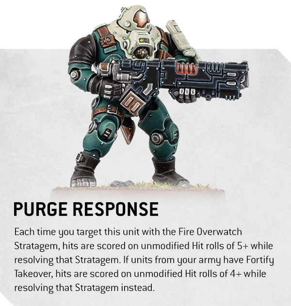 Buri’s damage output is serious. His Bane glaive has two profiles: Strike for precision with high AP and damage and Sweep for dealing with hordes. But be careful when he’s shot at—his ability to move towards the nearest enemy in vengeance could throw off your opponent’s strategy. Buri is a prime example of the kind of high-impact model you can expect from the new Leagues of Votann.