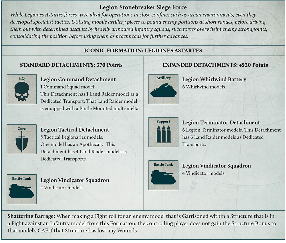 One of the most exciting changes is the rebranding of “Formations of Legend” into Iconic Formations. These don’t just include legendary characters anymore – they now provide unique rules for standard units. The Solar Auxilia Solar Pattern Cohort stacks Veletaris on Dracosans with elite commanders, perfect for a mounted hammer strike. The Legion Stonebreaker Siege Force mixes Vindicators, Whirlwinds, and infantry to wreck fortifications. And classic formations like the Theta-Garmon ‘Deathless’ Sub-Cohort and the White Scars Chogorian Warband still make an appearance, giving you flexibility and narrative flavor in every game.