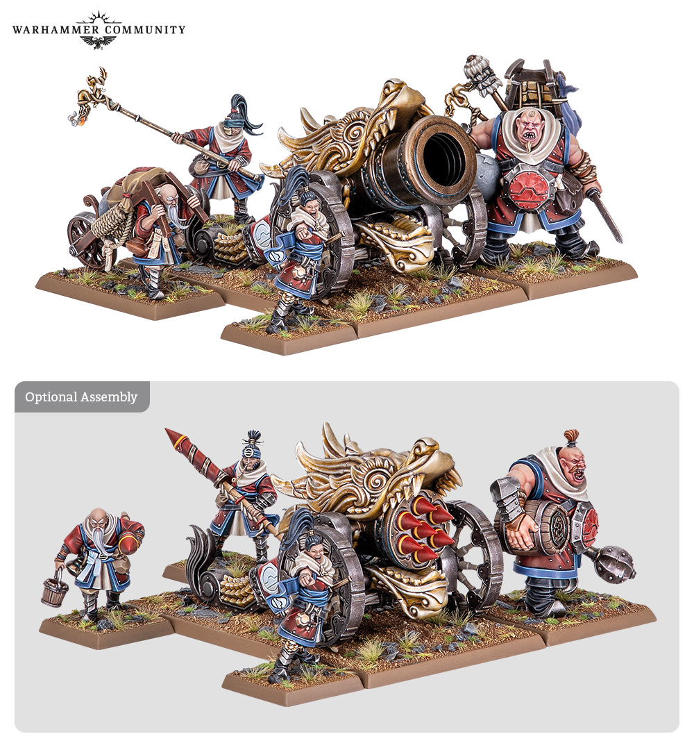 For heavy firepower, the Grand Cannon and Fire Rain Rocket Battery deliver devastating range support. Each kit lets you build two cannons, two rocket batteries, or a combination, complete with crews that even include an Ogre mercenary.