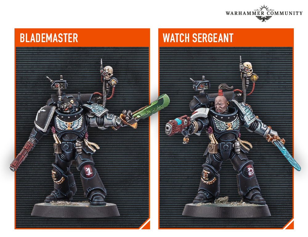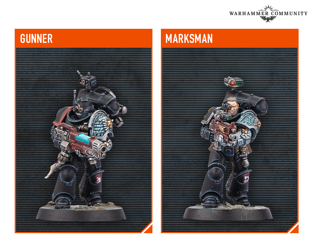 The Tacticus armour operatives are a highlight. One can become a Watch Sergeant with a power weapon or a Blademaster Veteran wielding a xenophase blade. The second Tacticus Marine can either be a Demolisher Veteran with a thunder hammer or an Aegis Veteran carrying a power maul and storm shield. The third Tacticus operative offers a choice between Gunner Veteran, equipped with a heavy plasma incinerator, or Marksman Veteran with a stalker bolt rifle.