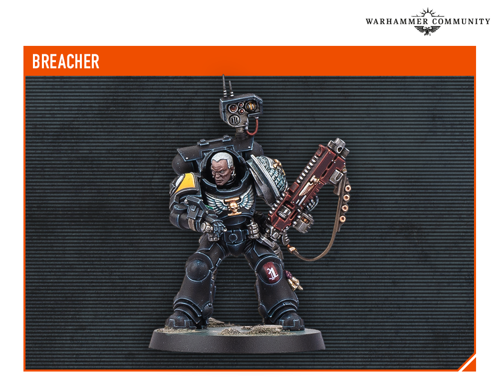 Finally, the Gravis armour choices are the heavy hitters. The Horde-slayer Veteran packs an infernus-pattern heavy bolter, the Bombard Veteran has a frag cannon, and the Breacher Veteran demolishes armoured targets with melta bombs and a hellstorm bolt rifle.