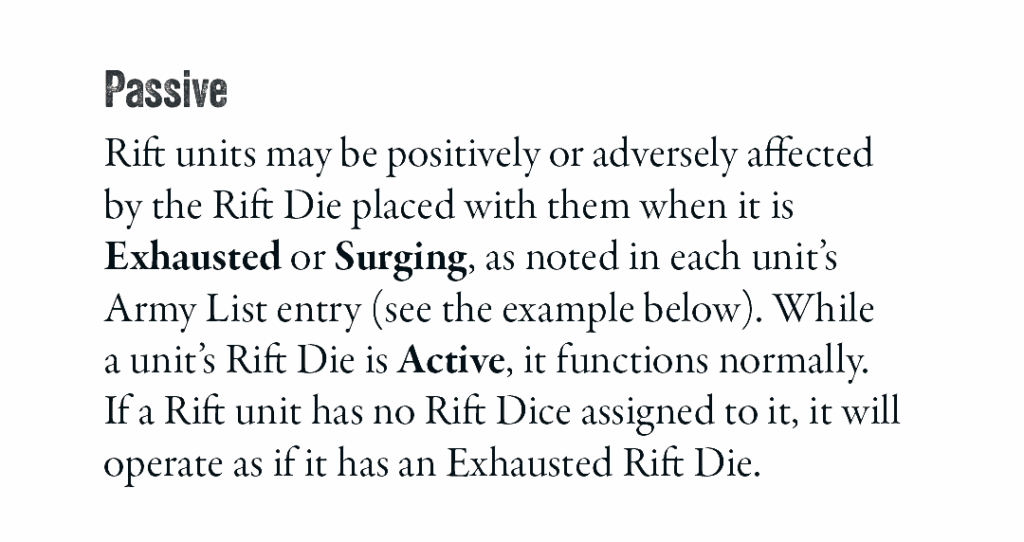 At the end of each turn, players roll their exhausted Rift Dice. A die showing Active or Surging is returned to the unit, while any that roll Exhausted go back to the dice bag. This mechanic means even your most reliable Rift units can face setbacks, forcing you to adapt and react like a true battlefield commander.