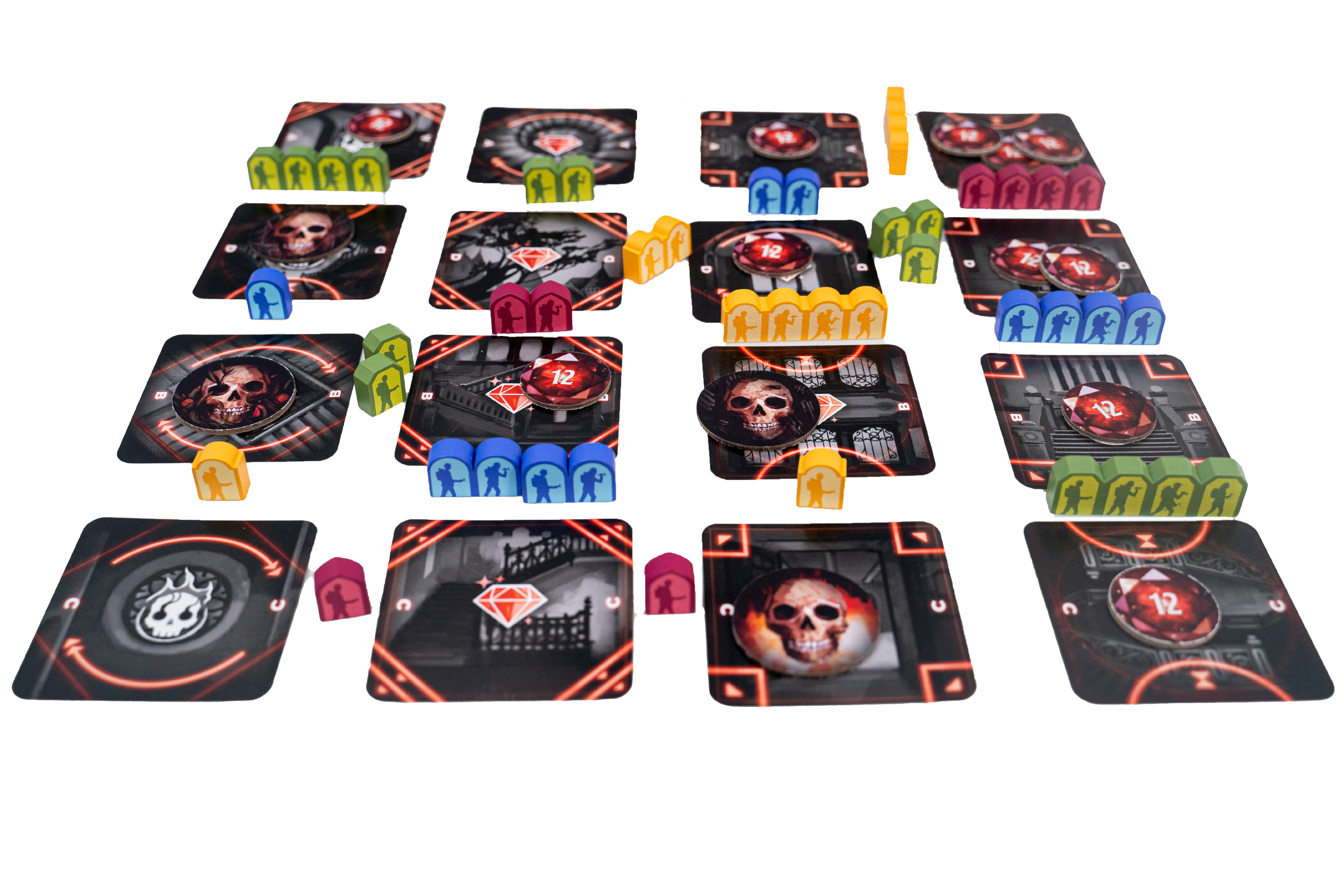 Each turn you place investigator tokens between rooms to claim control and gather clues simultaneously. As a result, placement evolves into a bidding mechanism where stronger placements can displace rivals. Moreover, deduction relies on clues that reference other rooms in the grid, not the room you inspect directly. Therefore players must piece together spatial logic and bluffing to navigate risks effectively. Despite reliance on deduction, Spectral also blends area control and bidding, which enhances interaction and suspense.