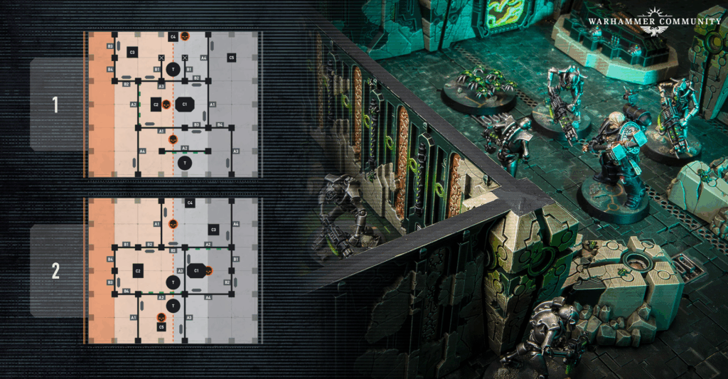 Tomb World introduces a modular new killzone that feels immediately dangerous and familiar at the same time. Much like Killzone: Gallowdark, the arena is made of snap-together wall pieces that form narrow corridors, tight rooms, and chokepoints perfect for tactical carnage. Even though these walls are decorated with xenos detritus, the rules remain consistent, which is a nice touch for veteran players. Doors are now phasing portals, but your operatives still perform the classic Operate Hatch action. Breachable terrain returns, and yes, it is still just as satisfying to punch through those wall segments as ever.