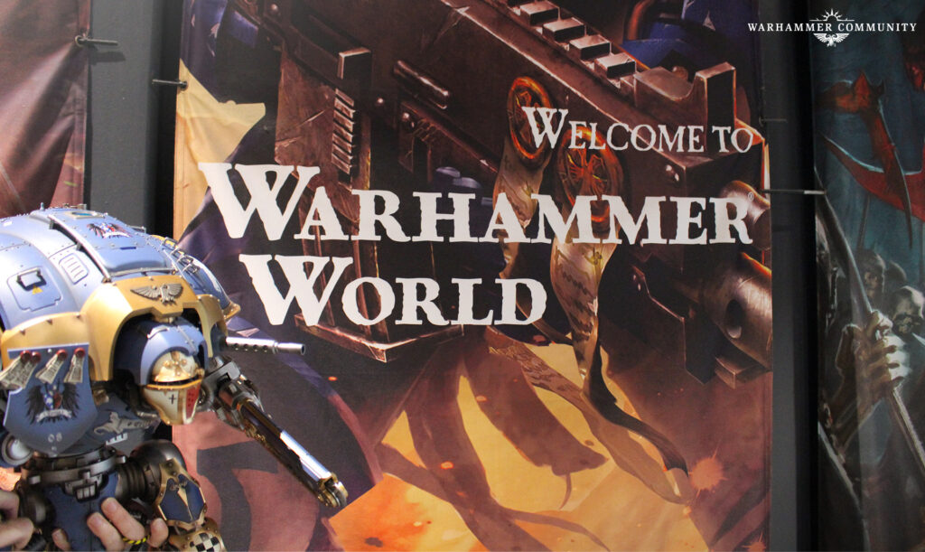 Our adventure kicked off at Warhammer World’s legendary entrance, where the original Space Marine statue still stands guard. From there, Malleo Civitatis—our aptly named Knight—marched further inside, passing by the towering Titus statue and a humble cabinet packed with Warhammer Community projects. Even if it could not appreciate them fully, its presence was enough to make us grin.