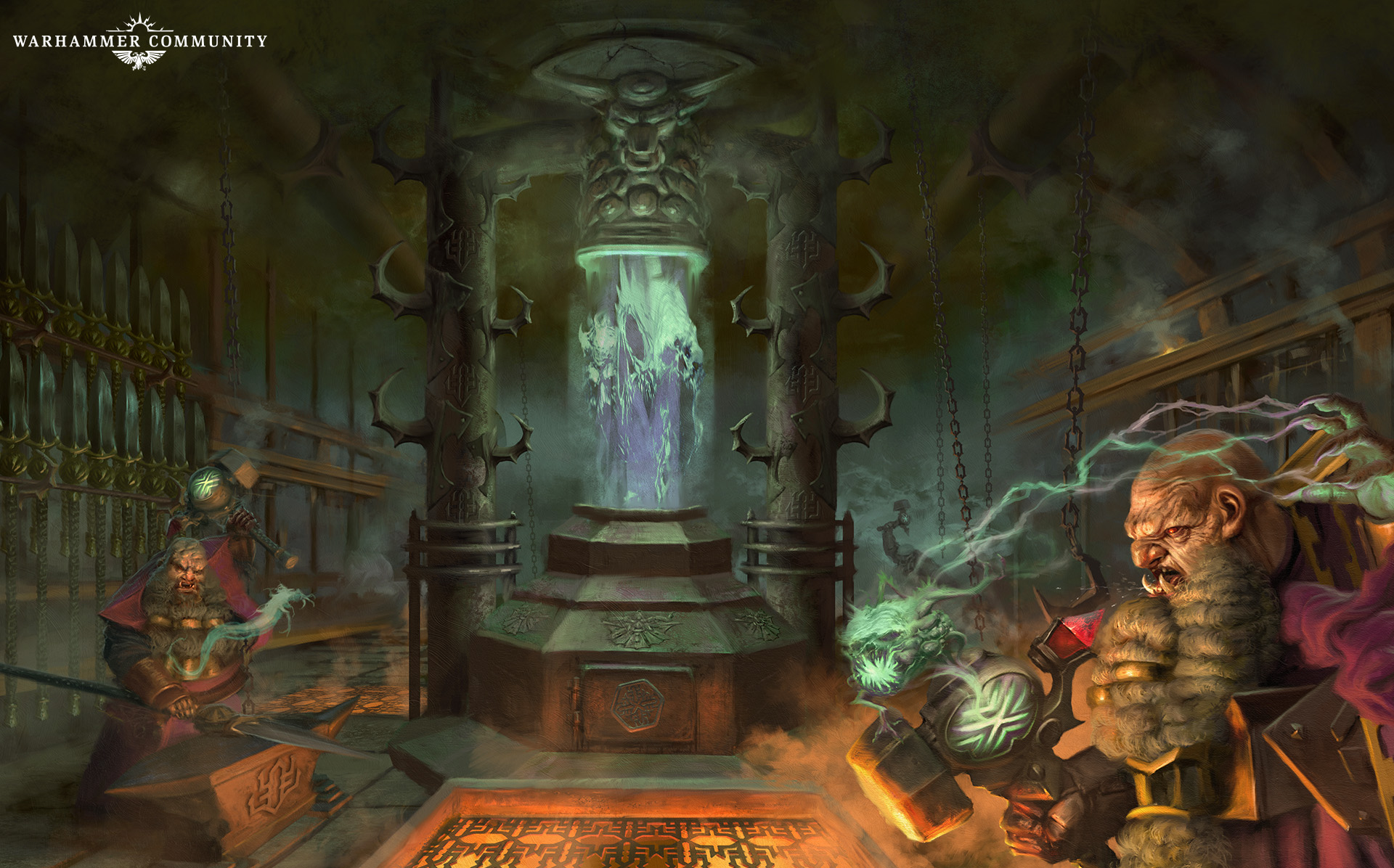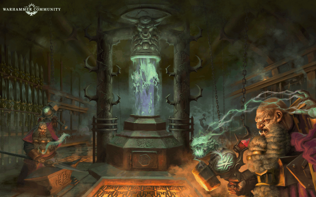 Central to the Helsmiths’ power is the Zharralid, a complex cuneiform of binding granted by Hashut. Only duardin possess the patience and resilience to carve the scripts correctly, with each error potentially catastrophic. The skill required elevates the Helsmiths’ ambition, and their mastery of daemonkind has allowed their mountain holds to swell with power. They rebuild their homes into baleful ziggurats, forging meticulous plans of conquest and raising armies to dominate the Mortal Realms. They focus primarily on unaligned daemons, whose lack of allegiance makes them easier to shackle and wield in battle.