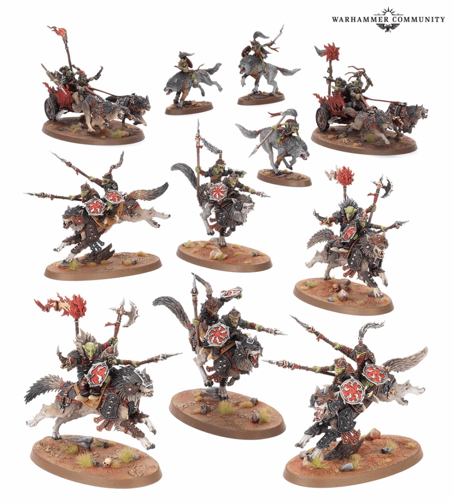 Meanwhile, the Snarlpack Huntaz inject speed and chaos into play. These Gitmobs chase a monstrous bully known as the Glareface Frazzlegit across the Mortal Realms. The force includes a Snarlboss, a Wolfgit Retinue, two units of three Snarlpack Cavalry, and two Sunsteala Wheelas, making them excellent for aggressive, high-mobility tactics.