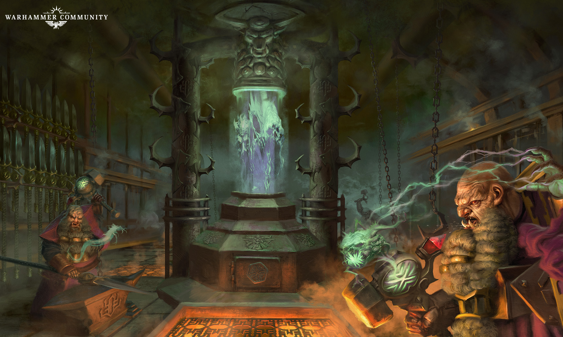 Darkness filled the rune-forge of Karak Monz. It crept up the stone walls and cast shadow over the statues of the ancestor gods as they watched, gilded and stern, from their plinths. Darkness – an unusual state for a karak of Aqshy. More unusual still in the Adamantine Chain, where channels of magmic force wound through the mountain vales. But then, the world was ending, so maybe it was not a surprise at all.