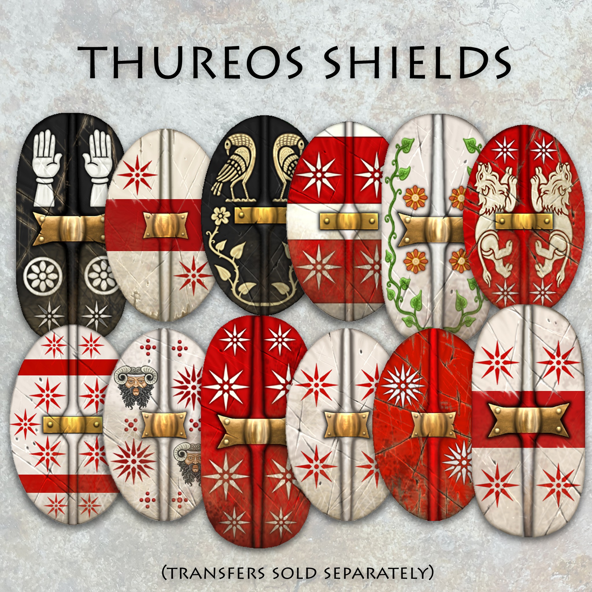 Of course this set will also have a companion set of shield transfers from Little Big Men Studios, Victrix’s new subsidiary. These are sold separately, but are a very good purchase to go with this set. They are gorgeous, easy to apply, and perfectly sized for the three different sizes of shield included in the set. Check them out below.