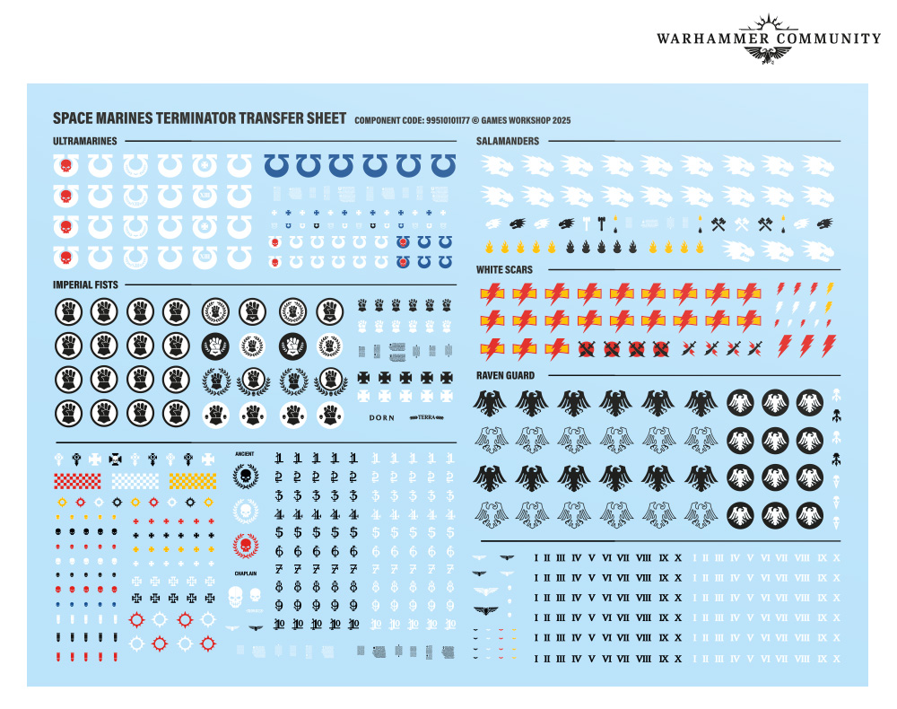 These new fighters debut inside the Crux Terminatus Battleforce. You get ten Assault Terminators plus an Ancient in Terminator armor. Moreover, five regular Terminators reinforce the line with classic firepower. A Chaplain and a Captain in Terminator armor round things out. That is a serious slice of a First Company in one box. A dedicated transfer sheet lands with over five hundred decals. It covers Ultramarines, Salamanders, Imperial Fists, White Scars, and Raven Guard. Additionally, you get generic icons, numerals, scripture, checks, and honors. Pre orders for the battleforce are coming soon, with kits following. Therefore, you can build the wall or the blender your list needs.