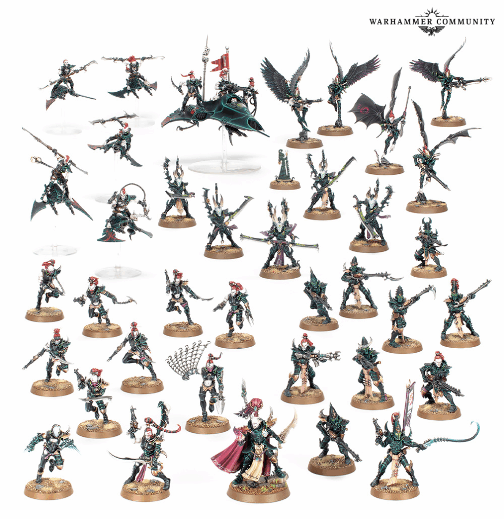 The galaxy gets a double shot of cruelty and courage next week. Drukhari sweep in with a full codex, new kits, and a realspace raid in a box.