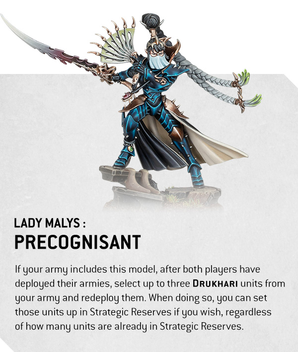 Malys embodies pregame trickery that wins close matches. Moreover, her Precognisant rule lets you redeploy up to three Drukhari units after deployment. You can even put those units into Strategic Reserves. Additionally, you ignore normal Reserve caps when you do. Consequently, opponents struggle to trap your Raiders or screen your knives. Therefore, you pivot into better lanes before turn one begins.